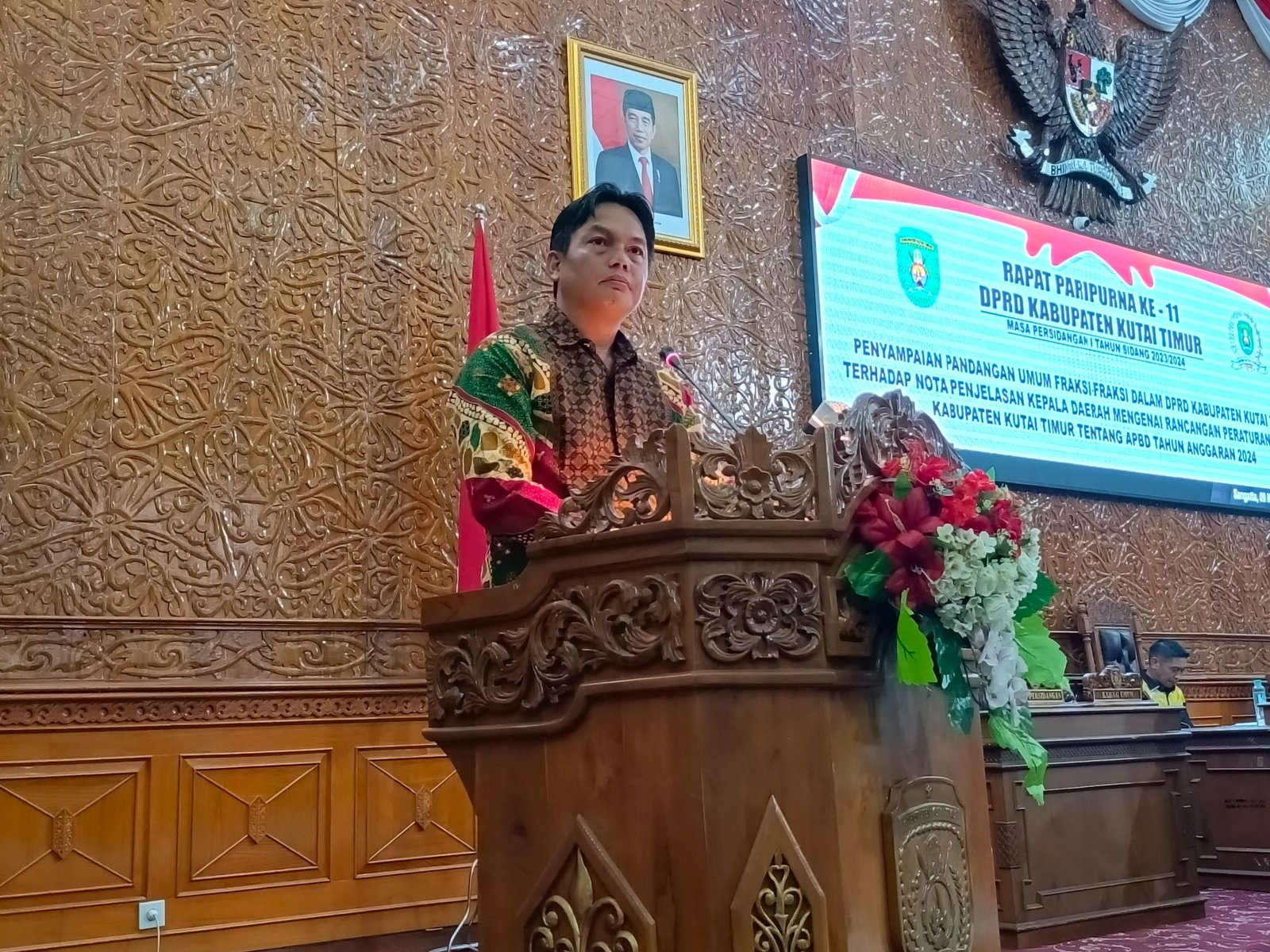 Kutim, reviewsatu.com- Anggota Fraksi PDI Perjuangan Siang Geah mengungkapkan pandangan Fraksi, terhadap Rancangan Anggaran Pendapatan dan Belanja Daerah (APBD) Kabupaten Kutai Timur tahun anggaran 2024.