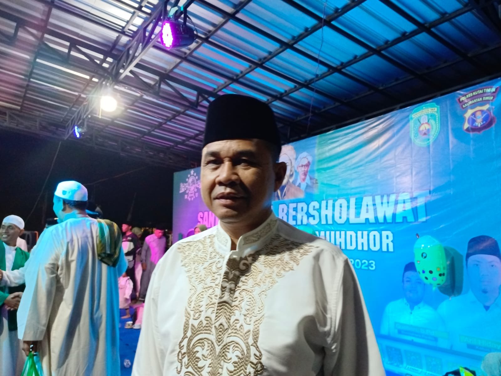 Kutim, reviewsatu.com – Ketua DPRD Kutim Joni menghadiri acara santri bersholawat, di Polder Ilham Maulana, Minggu (29/10/2023) malam.