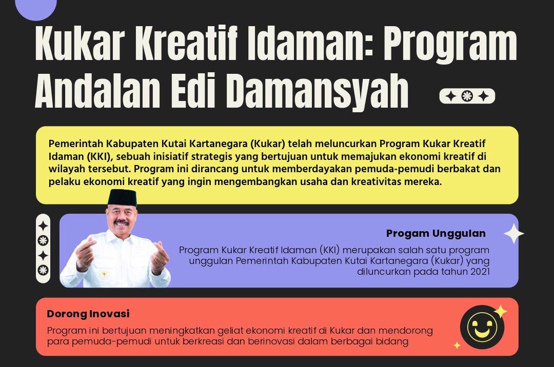 Kemajuan ekonomi yang signifikan di Kutai Kartanegara, yang tercermin dalam peningkatan PDRB dan penurunan TPT, tidak terlepas dari inisiatif strategis yang diusung oleh Bupati Edi Damansyah. Salah satu program unggulan yang menjadi katalis penting adalah Program Kukar Kreatif Idaman.