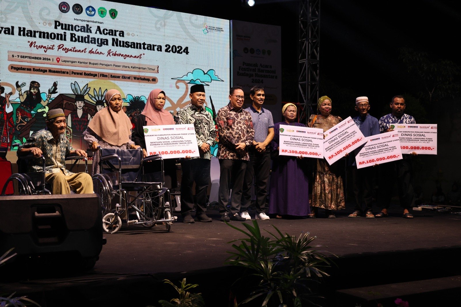 Tampak hadir dalam acara penutupan Festival Harmoni Budaya Nusantara, Deputi Bidang Sosial Budaya dan Pemberdayaan Masyarakat OIKN, Direktur Kebudayaan Pariwisata dan Ekonomi Kreatif OIKN, Direktur Kepersertaan BPJS Ketenagakerjaan, Direktur Ideologi, Karakter dan Wawasan Kebangsaan Kemendagri, Perwakilan Kementerian/Lembaga yang telah berpartisipasi, Forkopimda Kab.PPU, Forkopimda/OPD se- Propinsi Kalimantan Timur, Para Tokoh Adat, Pemangku Kepentingan, Budayawan dan Seniman. (adv/one)