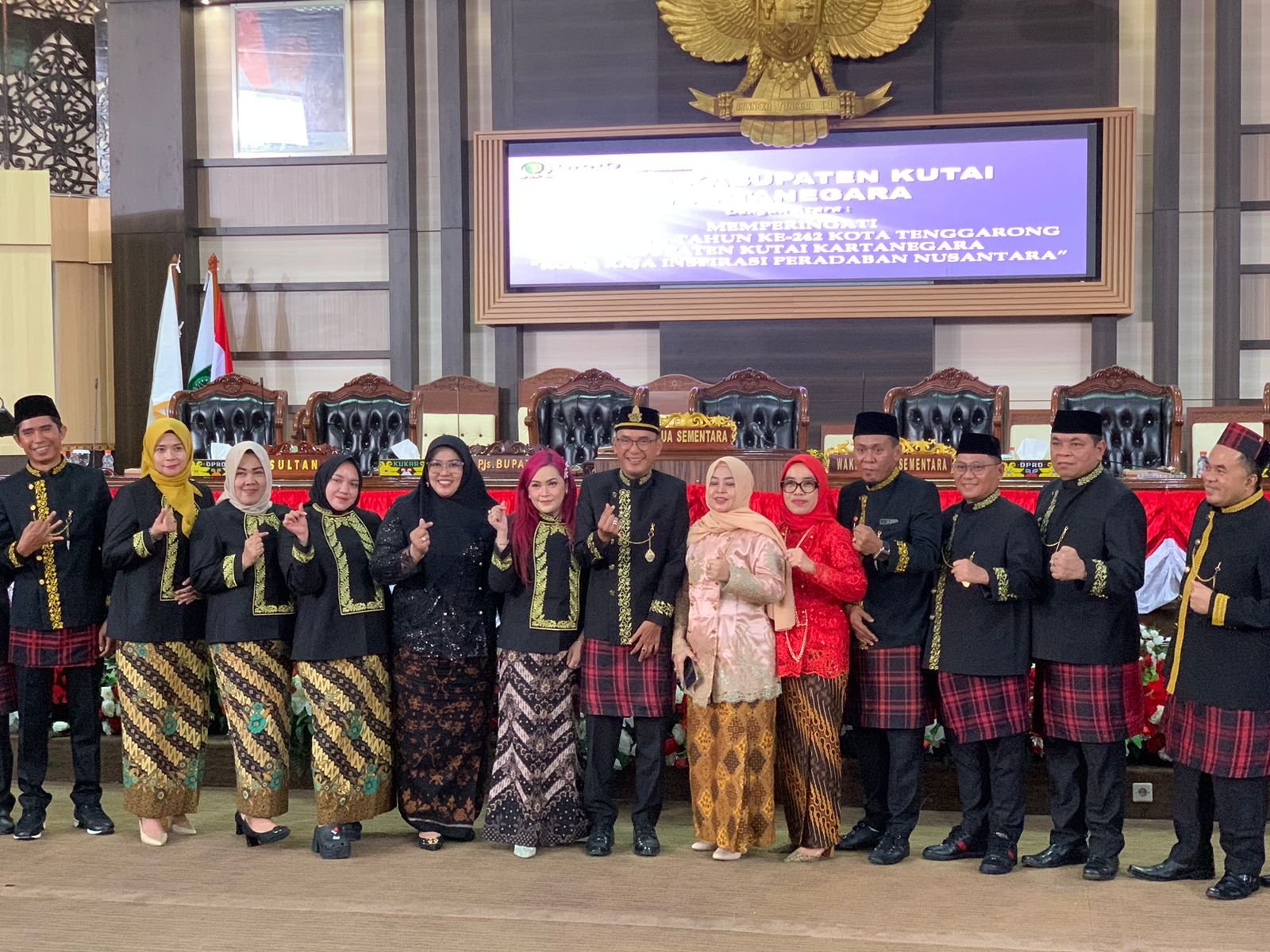 Ditambah, anggota DPRD Kukar tampak seragam mengenakan takwo, baju adat khas Kutai yang memperkuat nuansa budaya lokal di dalam rapat tersebut.