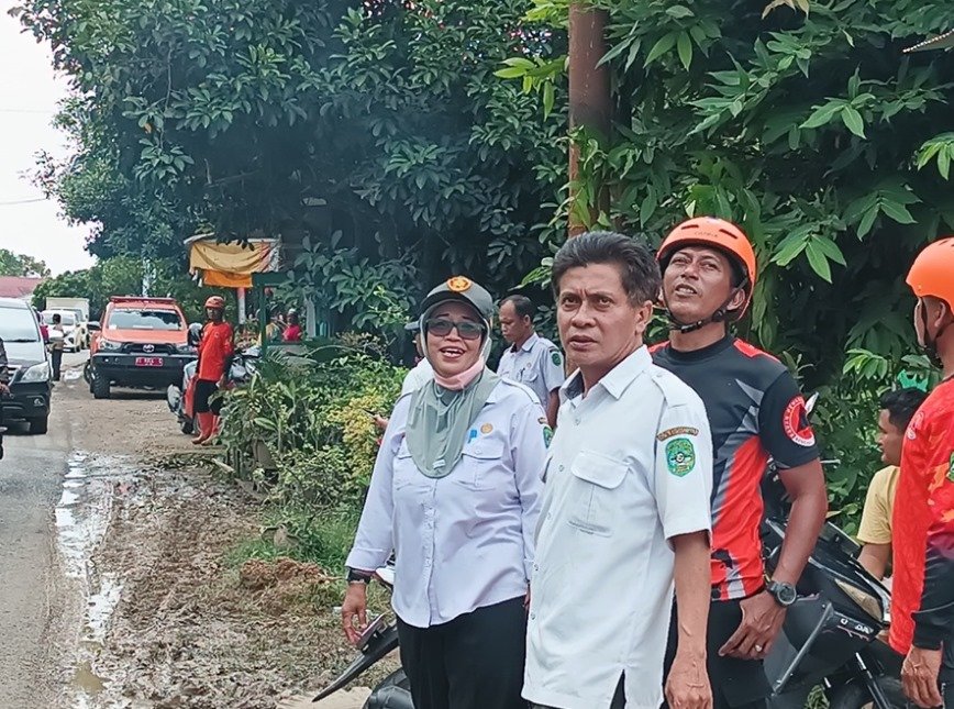 Kepala Seksi Pelayanan Umum Muhammad Fadli dan Kepala Seksi Ketentraman dan Ketertiban Fitri Handayani, turun ke lapangan untuk memastikan situasi tetap terkendali dan melakukan koordinasi awal dengan pihak desa serta BPBD.