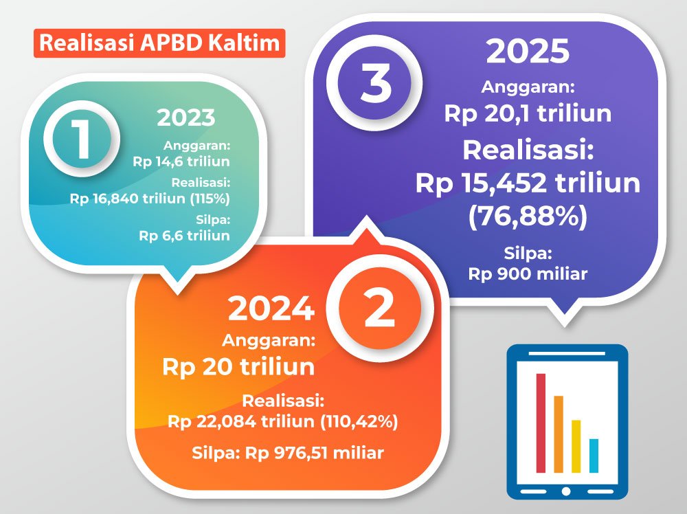 Samarinda, reviewsatu.com – Realisasi anggaran Kaltim tahun anggaran 2025 hanya mencapai 76,88 persen. Dari pagu anggaran Rp 20,1 triliun, cuma terealisasi Rp 15,452 triliun.