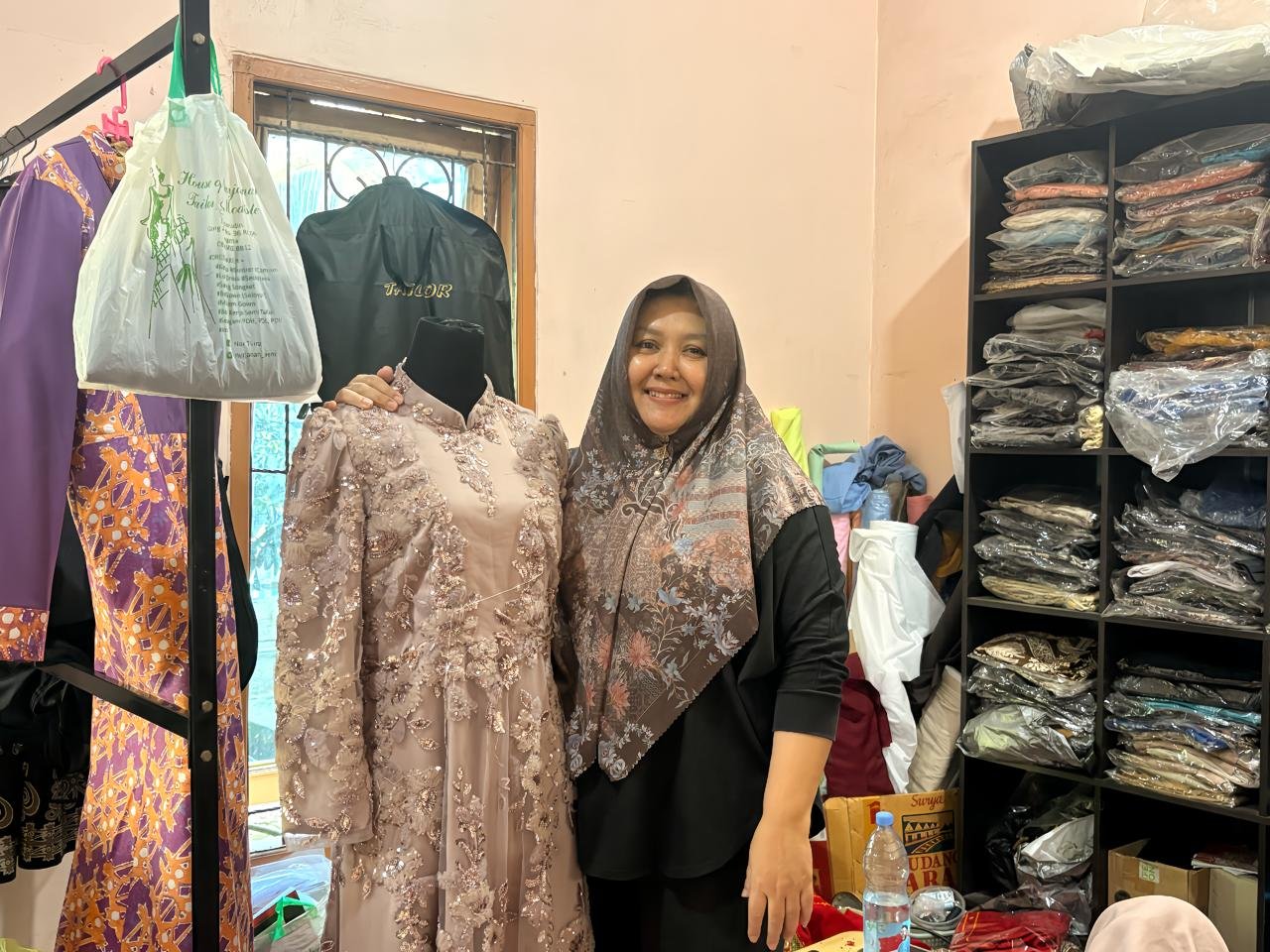 “Awalnya menjahit sendiri, lama-lama order makin banyak dan butuh bantuan,” ujarnya.