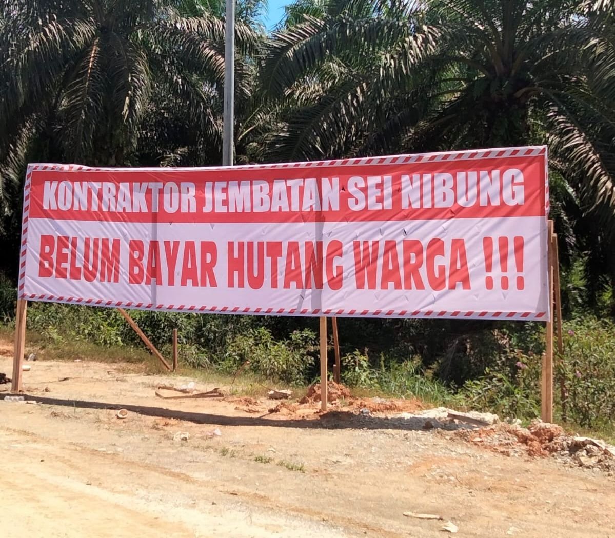 Persoalan utang tersebut mencuat setelah warga Desa Kadungan Jaya, Kecamatan Kaubun, memasang spanduk protes di sekitar lokasi proyek.